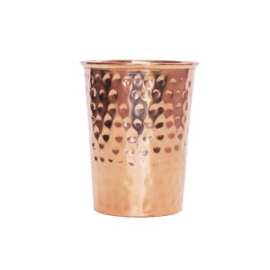 Měděný hrnek tepaný je součástí kolekce a zobrazuje bohaté dědictví a umělecké řemeslo, které se v Indii praktikuje po generace.