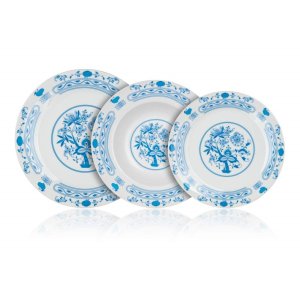 18dílná talířová sada ONION s dekorem cibulák se skládá ze 6 ks hlubokých talířů 21,5 cm, 6 ks mělkých talířů 24 cm a 6 ks dezertních talířů 19 cm.