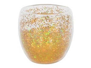 SKLENICE S DVOJÍM SKLEM S KONFETY 250 ML, ZLATÁ