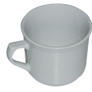 Bílý porcelánový hrnek objemu 480 ml bez dekoru s velkým uchem. 2.jakost, černé tečky nebo kazy na glazování.