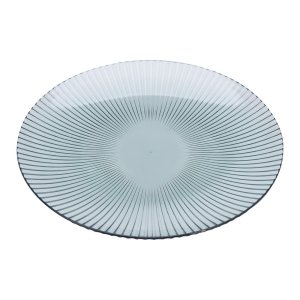 Podnos / talíř kulatý 20 cm, PROUŽKY, PH TRA. průměr: 20 cm výška: 2 cm materiál: plast barva: transparentní vzhled recyklovaného skla Plastový servírovací podnos / talíř.