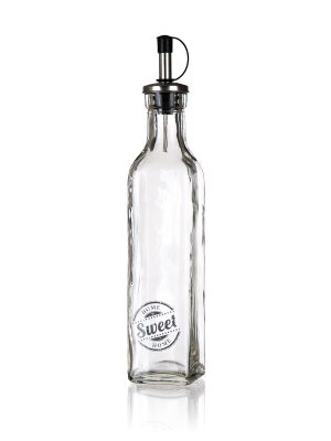 Láhev na olej 500 ml SWEET HOME, skleněná. objem: 500 ml Láhev na olej s dekorem SWEET HOME hranatého tvaru, vyrobená ze skla, je ideální pomocník do kuchyně.