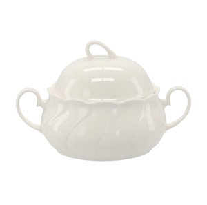 Porcelánová mísa bílé barvy, vhodná na servírování polévky.