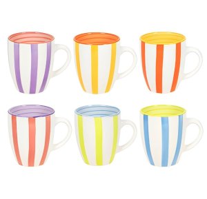 Keramická souprava hrnků SUMMER - 6 x hrnek na kávu i čaj.Tato sada obsahuje šest hrnků o objemu 350 ml, všechny v bílém provedení s různými pastelově barevnými pruhy.