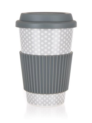 Hrnek 400 ml GO, šedý, silikonové víčko, keramický. objem: 400 ml průměr: 9 cm výška: 12,5 cm materiál: keramika, silikon barva: šedá Hrnek se silikonovým víčkem GO je vyroben z keramiky.