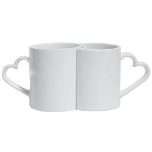 Set dvou keramický hrnky pro sublimační potisk Ozdobná rukojeť ve tvaru srdce Hrnky mají certifikát o hygienické nezávadnosti Ideální dárek pro různé příležitosti Výška 95 mm, průměr 82 mm