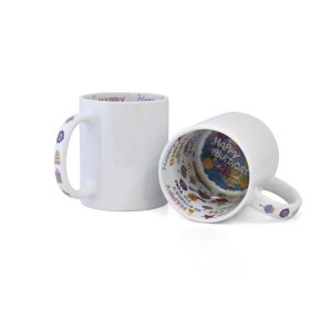 bílý lesklý keramický hrnek vnitřní strany, dno a ouško potištěno tématickou grafikou - NAROZENINY vnější strana je opatřena polyesterovou vrstvou vhodný pro sublimační potisk výška 95 mm, průměr 80 …