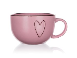 Hrnek JUMBO 730 ml, HEART RŮŽ keramický objem: 730 ml průmčr: 13 cm výška: 8,6 cm materiál: keramika barva: růžová Hrnek jumbo HEART je vyrobený z keramiky a je vhodný na horké i studené nápoje.