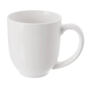 Bílý porcelánový hrnek objemu 320 ml bez dekoru s velkým uchem. 2.jakost, černé tečky nebo kazy na glazování.