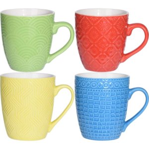 hrnek porcelán 240ml/ 8,12 oz, sada 4ks. velikost na kus průměr 75xh70mm. ve 4 různých barvách na sadu, zelená, žlutá, modrá a červená.