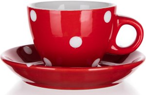 Šálek + podšálek 100 ml, puntíky, keramický ČRV. objem: 100 ml materiál: keramika barva: červená Šálek s podšálkem DOTS, červený s bílými puntíky, je vyrobený z kvalitní keramiky.