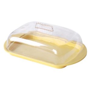 Kvalitní plastová máslenka s průhledným rovným poklopem vyrobená z materiálu BPA Free.