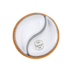 Mísa v košíku SWEET HOME o průměru 20,5 cm v proutěném PVC košíku 20,5 cm, je vhodná na podávání slaných i sladkých pochutin.