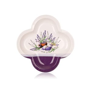 Servírovací mísa čtyřlístek 32 cm LAVENDER, materiál - keramika, fialovo-bílá glazura s dekorem levandule.