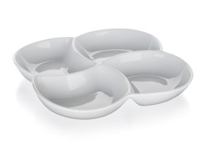 Servírovací porcelánová miska ADRIA dělená, v bílé barvě, je vhodná pro servírování různých dipů, oříšků, chipsů, ovoce či zeleniny.