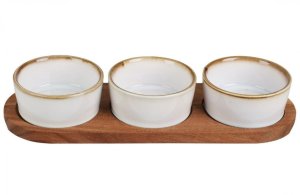 - servírovací set misek na podnosu pro nejrůznější příležitosti- ideálně použijete při servírování předkrmů, dipů a pochutin- materiál: keramika s lesklou glazurou, akátové dřevo- stylový podnos z akátového …