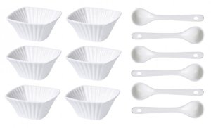 - materiál: bílý porcelán- perfektní pro servírování předkrmů, pochutin, dezertů, dipů a omáček- rozměry jedné misky cca: 9 x 4 cm- žáruvzdorné do 220 °C, lze využít také k zapékání v troubě- vhodné …