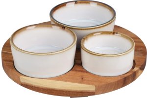 - servírovací set misek na kulatém podnosu pro nejrůznější příležitosti- ideálně použijete při servírování předkrmů, dipů a pochutin- materiál: keramika s lesklou glazurou, akátové dřevo- stylový podnos …