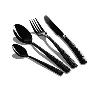 24dílná sada příborů, vyrobena z nerezové oceli s matnou černou povrchovou úpravou.