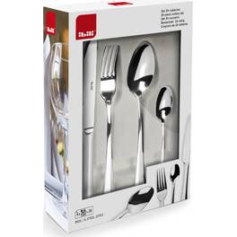 Sada příborů LINES 24 dílů obsahuje: 6x polévkovou lžíci, 6x vidličku, 6x jídelní nůž a 6x čajovou lžičku.
