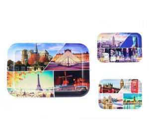 Servírovací podnos s dekorem, plastový materiál, rozměry 30.5 x 21 cm.