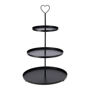Podnos 3 patra, kulatý, kov. ČER. průměr: 30 cm výška: 45 cm materiál: kov barva: černá Kulatý kovový podnos se třemi patry vhodný pro servírování zákusků či cukroví.