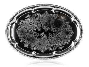 Tác AKCENT 40,5 x 29 cm, ovál, Cr. rozměry: 40,5 x 29 cm materiál: pochromovaný kov síla materiálu: 0,35 mm Oválný tác AKCENT - pochromovaný kovový tác s ozdobným gravírováním.