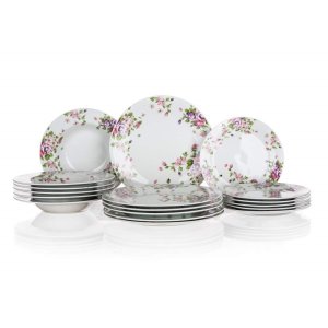 Sada jídelní BEAUTY 18díl., porcelánová, KYTKY. sada obsahuje: 6 x dezertní talíř, pr. 19 cm 6 x hluboký talíř, pr. 21,5 cm 6 x mělký talíř, pr. 24 cm materiál: porcelán 1Talíře lze používat do mikrovlnné …