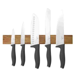 Sada 6 ks nožů s magnetickým závěsem z akáciového dřeva, Antracit Collection• Materiál: nerezová ocel 3cr13• Kuchařský nůž 20 cm• Nůž na chleba 20 cm• Nůž Santoku 17,5 cm• Pracovní nůž 12,5 cm• Nůž na …