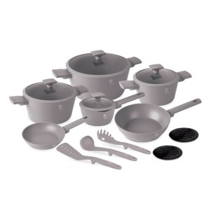 15dílná sada značky Berlingerhaus edice Antracit, TitanPro povrch, Turbo indukce, poklice Soft Close, rukojeti Stay Cool, které se neohřívají, matný antracit.