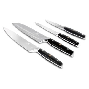 Sada nožů s fulltang konstrukcíMateriál: Vysoce kvalitní nerezová ocel 3cr13Obsah sady:Kuchařský nůž: 20 cm Santoku nůž: 17,5 cm Univerzální nůž: 12,5 cm Loupací nůž: 9 cmVlastnosti:Barva: Matná černá …