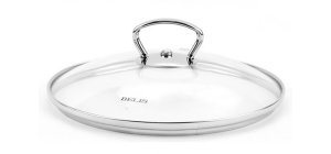 Kvalitní skleněné poklice s nerezovým kováním opatřené praktickou dírou pro odvod přebytečné páry .