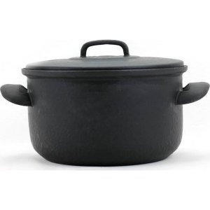 Litinový hrnec s poklicí. Nádobí BSE má uvnitř speciální modrý smalt.