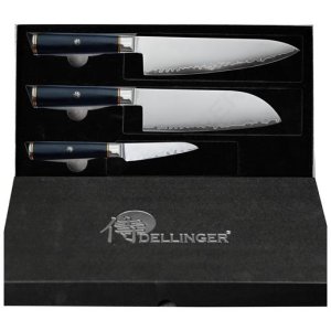 Sada kuchařských nožů, japonská ocel AUS-10 (HRC 58–62) pro maximální ostrost a výdrž, 3vrstvá konstrukce čepele.