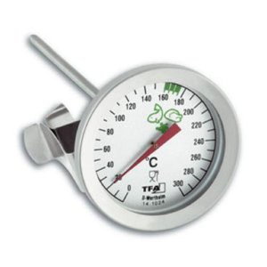 rozměry: pr. 51 x 60 x 162 mm rozsah měření teploty: 0 °C až +300 °C hmotnost: 43 g materiál: nerez ocel s klipem Vpichovací teploměr je určen nejen k měření teploty tuku při smažení, s tímto pomocníkem …