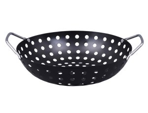 Grilovací pánev WOK BARBECUE GARDEN je opatřena otvory pro rovnoměrné grilování masa, ryb a zeleniny.