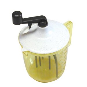 Plastový mechanický šlehač o objemu 0.75 litru.