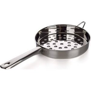 Síto na halušky 18 cm, nerez. průměr: 18 cm výška síta: 2,8 cm délka držadla: 14 cm hmotnost: 142 g materiál: nerez Síto na halušky slouží k výrobě noků, játrové a jiné zavářky do polévek.