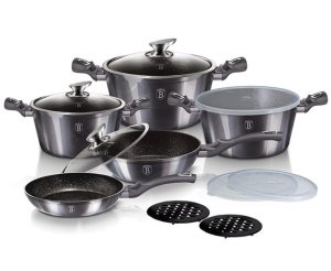 Sada nádobí s mramorovým povrchem, 13 ks, 3vrstvý povrch pro nepřilnavost a snadné mytí, energeticky úsporné vaření, zesílené nerezové Turbo indukční dno, vhodný i do myčky, materiál bez škodlivin, barva …