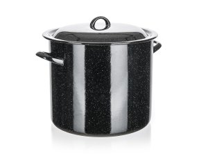 Hrnec + skleněná poklice, pr .24 cm, 7,5 l. objem: 7,5 l průměr: 24 cm výška: 16,5 cm Smaltovaný hrnec se skleněnou poklicí.