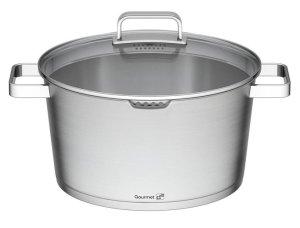 Hrnce Gourmet Line z leštěné nerezové oceli lze použít na všechny druhy sporáků i na indukci.