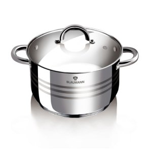 -Indukční nádobí Bergner-materiál: nerezová ocel 18/10, tloušťka 0,6 mm-stříbrná barva-celonerezové držadla-rozměry: průměr 20 x 11,5 cm, objem 3,3 L-sendvičové dno-skleněná poklice