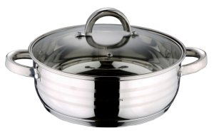 Kvalitní nerezový nízký kastrol pro přípravu oblíbených pokrmů.