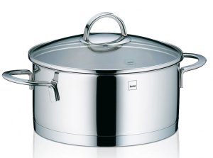 Celonerezový hrnec se skleněnou poklicí a zesíleným dnem.