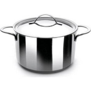 Hrnec 20 cm, se skleněnou poklicí, 5,6 l, nerez, LIVING. průměr: 20 cm objem: 5,6 l materiál: nerez 201, skleněná poklice Nerezový hrnec LIVING se skleněnou poklicí, nerezovým knobem a držadly.