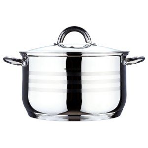 Kvalitní celonerezový hrnec 18/10 s poklicí se zesíleným dnem.