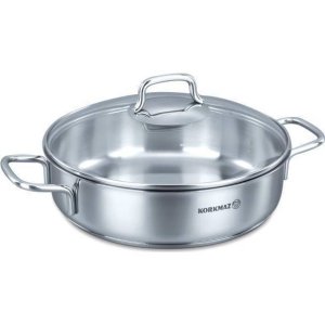 Celonerezový nízký hrnec s pokllicí se zesíleným třívrstvým akumulačním dnem.
