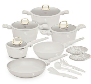 Sada nádobí – 3 hrnce, 3 poklice, 3 pánve, 3 ks kuchyňského náčiní a 3 chrániče, odolný a nepřilnavý povrch ILAG, lisovaný hliník pro rychlý rozvod tepla, pro všechny druhy sporáků, ergonomické a žáruvzdorné …
