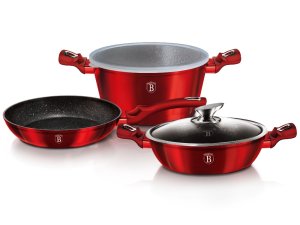 Sada značky Berlingerhaus edice Burgundy Metallic Line se skládá z 13 kusů nádobí. 3vrstvý mramorový povrch, charakteristický svou dokonalou nepřilnavostí.