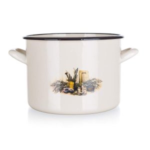 Smaltovaný hrnec s uchy a poklicí objemu 10 litrů, je vhodný především na škvaření sádla, ale také na vaření všech jiných pokrmů.